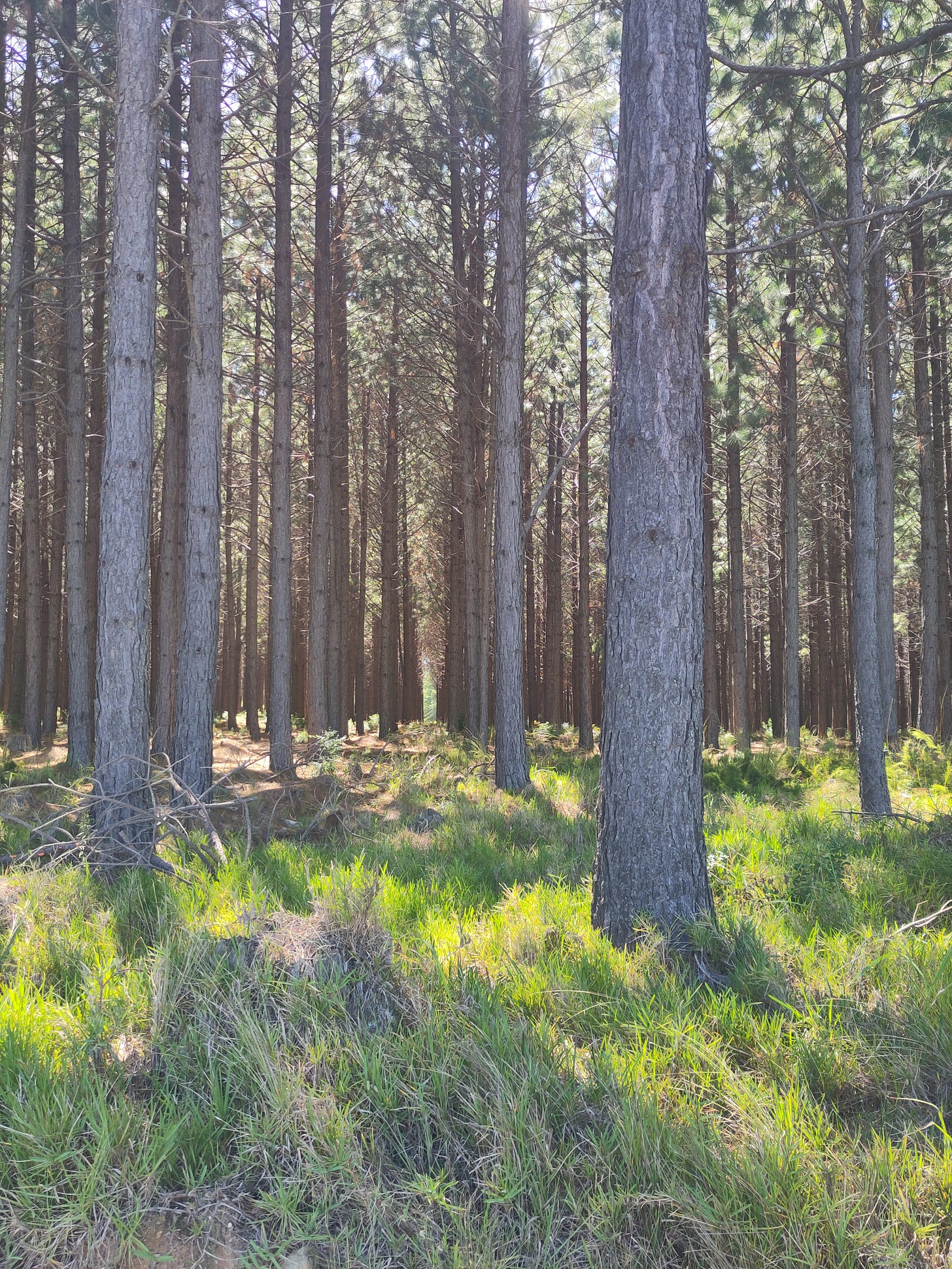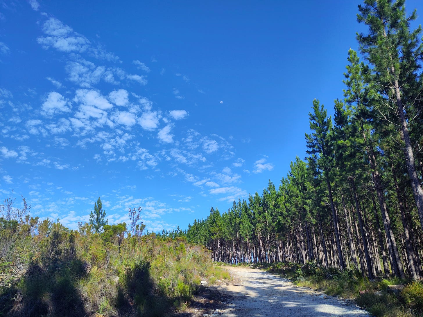 One. A Monterey Pine timber plantation on the edge of native fynbos habitat off the Tsitsikamma Trail. This is a metaphor for so much: the cultural destruction and homogenization brought about by colonization, the self-imposed and false division between the messiness of nature and orderliness of society. All that metaphoric darkness beneath a deceptively clear sky.